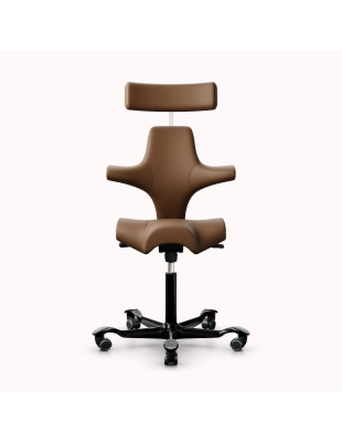 HÅG Capisco 8107 mit Kopfstütze, Rückenlehne und ergonomischem Sattelsitz.